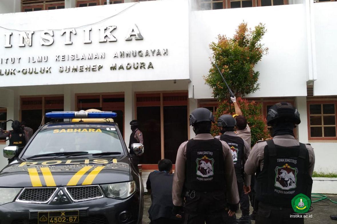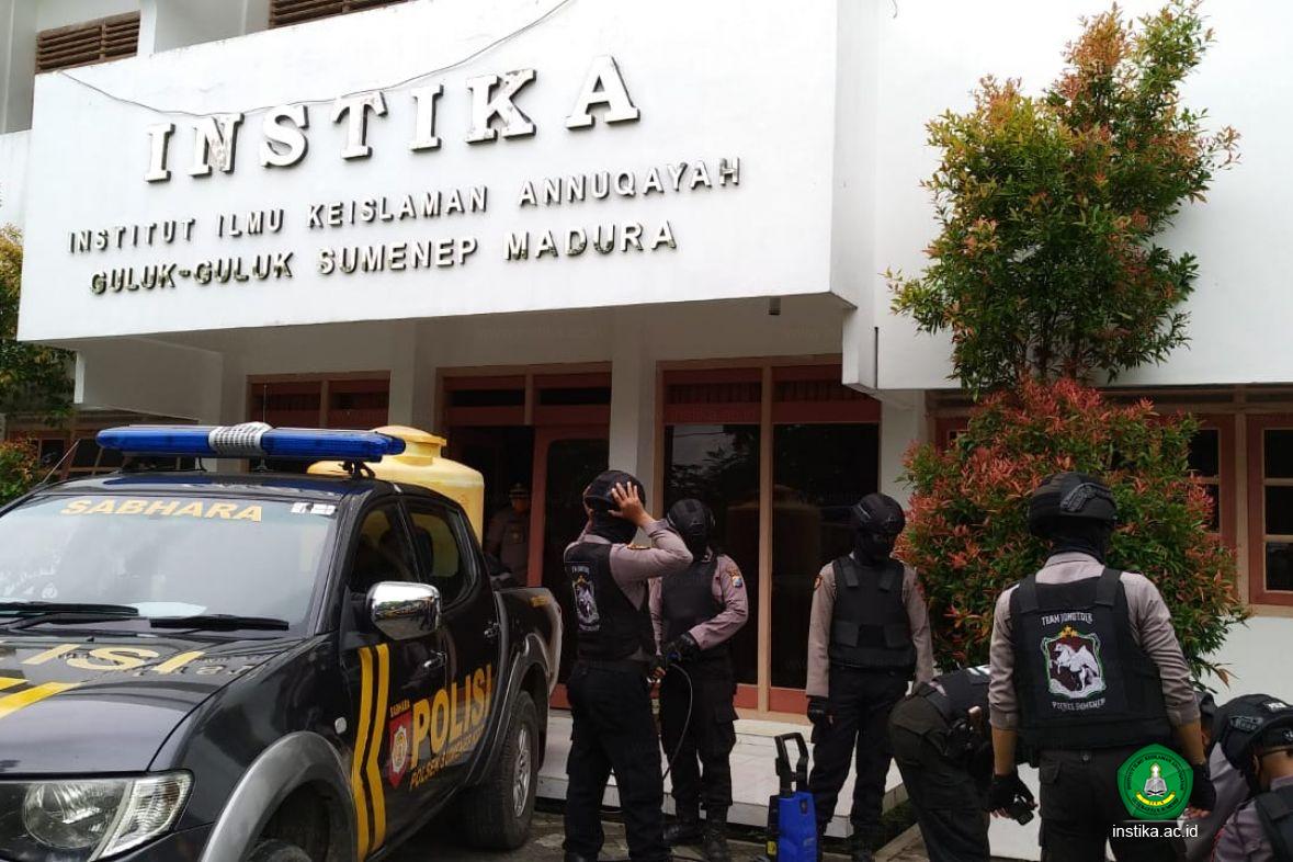 "Kami mengucapkan terima kasih kepada Polres Sumenep dan jajarannya yang telah melakukan penyemprotan di lingkungan kampus INSTIKA," ujar wakil rektor 2, KH. Mohammad Hosnan, M.Pd.