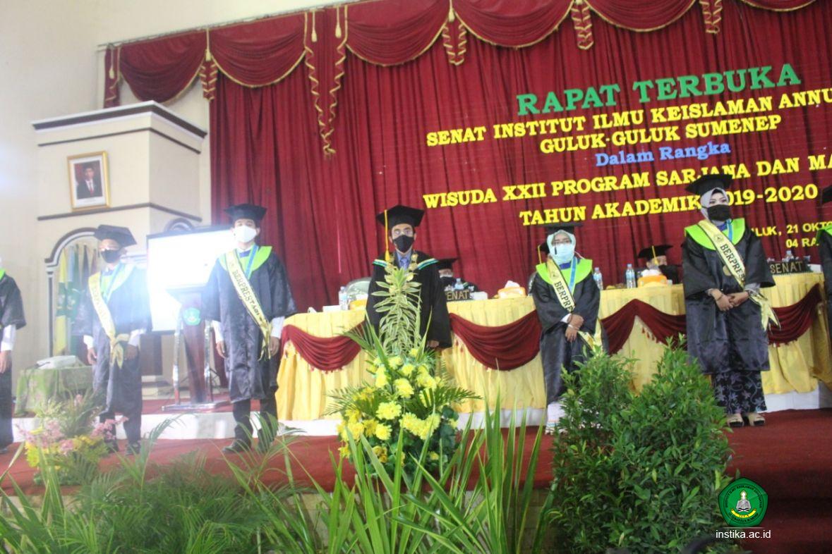 Guluk-Guluk - INSTIKA - Wisudawan dan wisudawati terbaik dan berprestasi Institut Ilmu Keislaman Annuqayah (INSTIKA) Guluk-Guluk Sumenep tahun akademik 2019-2020 sudah resmi diumumkan pada wisuda tahap 1, Rabu (21/10/2020) di Aula Assyarqawi INSTIKA.