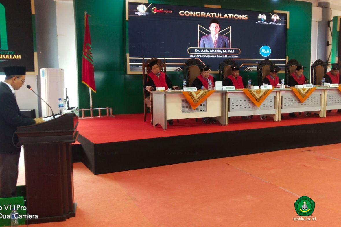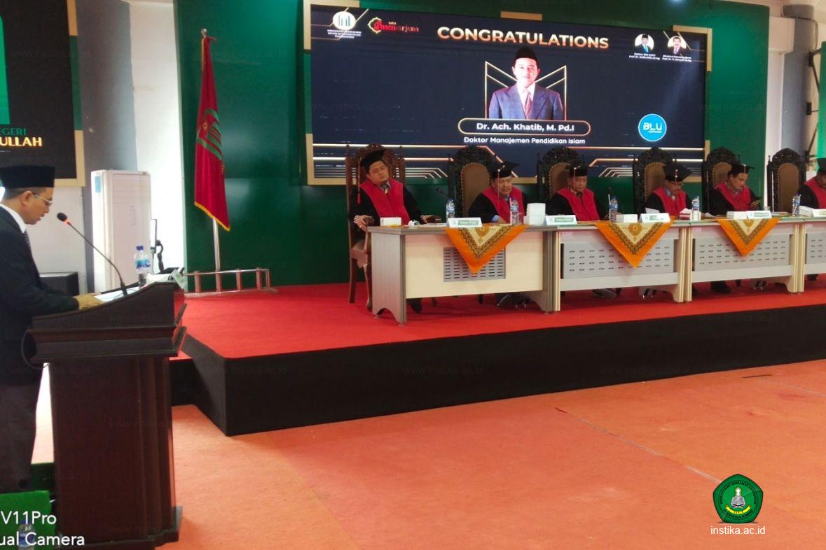 Yang membanggakan civitas academica INSTIKA, gelar tersebut diperoleh dengan predikat Cum Laude. “Berdasarkan hasil Rapat Tim Penguji Disertasi Pascasajana Universitas Islam Negeri (UIN) Sayyid Ali Rahmatullah Tulungagung, dinyatakan bahwa: Ach. Khatib, NIM 12601195016 lahir di Sumenep 17 Agustus 1983 telah menyelesaikan ujian Disertasi Terbuka Promosi Doktor ke-134 Pascasarjana UIN Tulungangung, dan doktor ke-111 prodi Manajemen Pendidikan Islam dengan predikat Cum Laude,” kata pimpinan sidang promosi, Dr. H. Abd. Aziz, M.Pd.I.