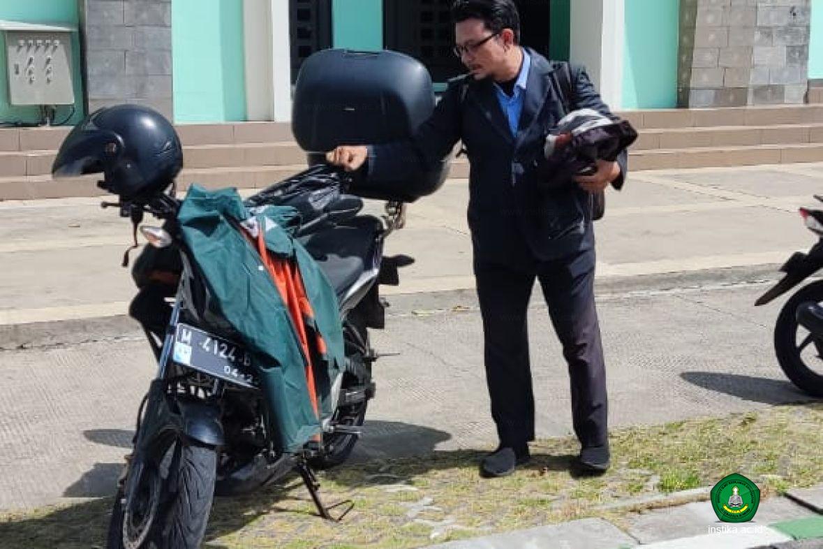 Surabaya - INSTIKA - Ujian Terbuka Program Doktor Pascasarjana UIN Sunan Ampel Surabaya itu akan dimulai pukul 13:30 WIB, Jumat (12/08/2022). Peserta ujian, Tajus Subqi, hadir ke lokasi ujian sekitar pukul 13:10 WIB. Uniknya, Tajus Subqi dari rumahnya di Pamekasan ke tempat ujian (UINSA Surabaya) mengendarai sepeda motor.