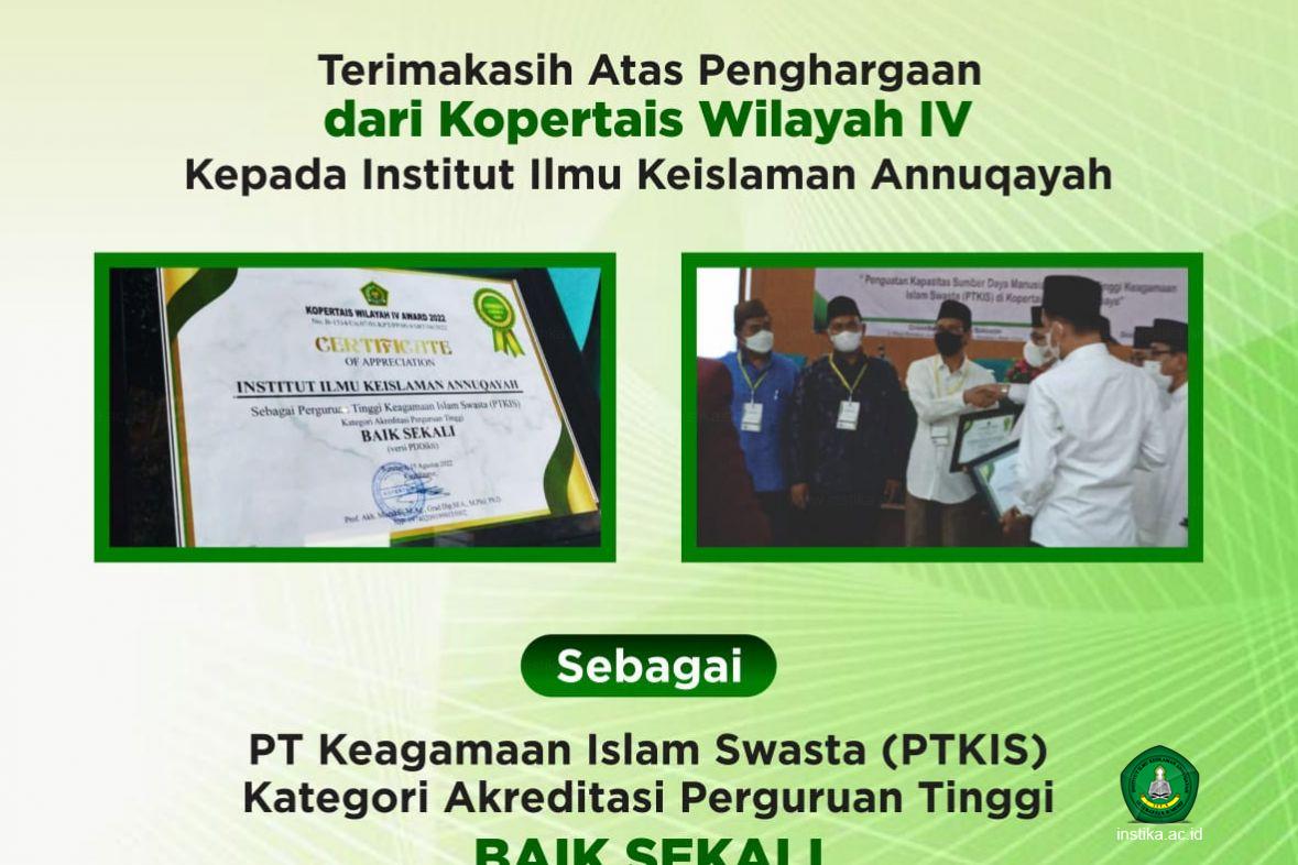 Menurut laporan Rektor INSTIKA, Kopertais IV mengharapkan penghargaan yang diperoleh Perguruan Tinggi Keagamaan Islam Swasta (PTKIS) di wilayah Kopertais IV dapat menjadi motivasi dan inspirasi bagi perguruan tinggi untuk terus meningkatkan mutu serta layanan bagi masyarakat.