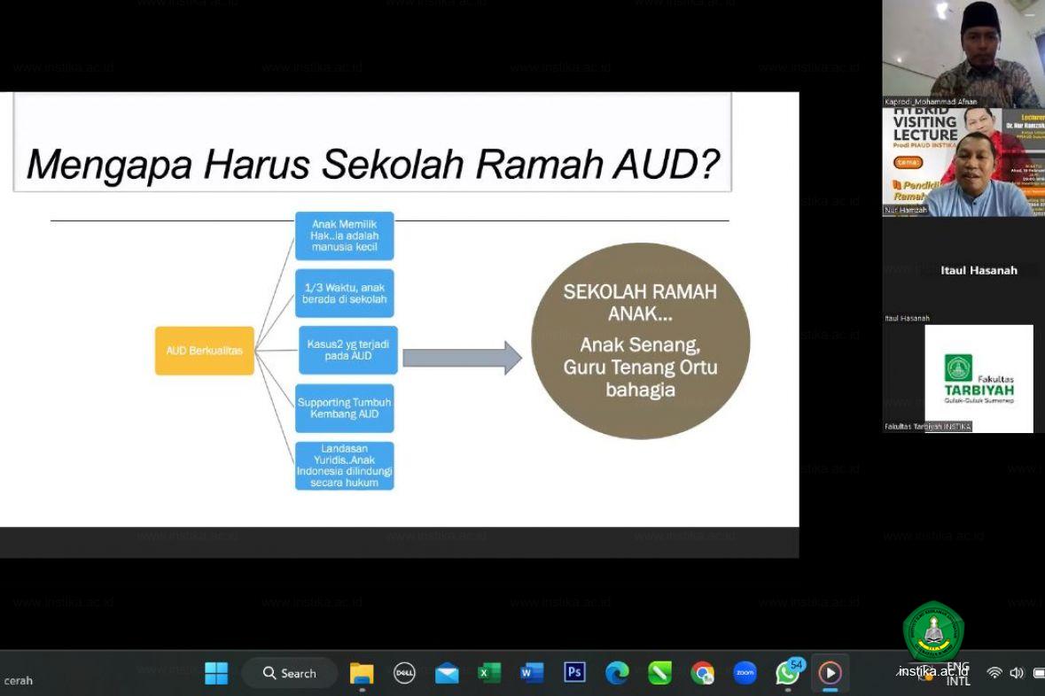 Guluk-Guluk - INSTIKA - Mahasiswa perlu mendapatkan pengalaman keilmuan dari dosen di luar institusinya. Sehubungan dengan ini, program studi Pendidikan Islam Anak Usia Dini (PIAUD) Fakultas Tarbiyah Institut Ilmu Keislaman Annuqayah (INSTIKA) Guluk-Guluk Sumenep menggelar Hybrid Visiting Lecture, Ahad (19/02/2023), di Hybrid Meeting on Zoom dan di Lab PAUD bagi mahasiswa yang berdomisili di pondok.