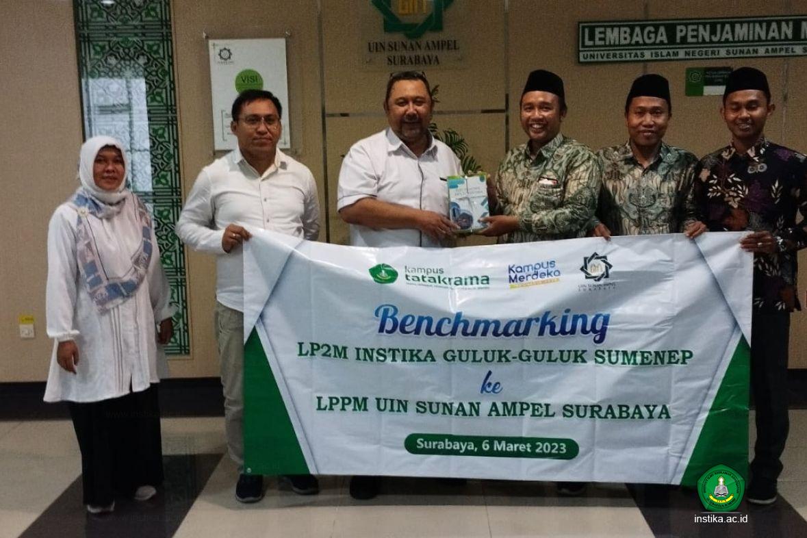 Surabaya - INSTIKA - Lembaga Penelitian dan Pengabdian kepada Masyarakat (LP2M) INSTIKA Guluk-Guluk Sumenep melaksanakan kunjungan kerja dalam rangka Benchmarking  dan Memorandum of Agreement (MoA) ke Lembaga Penelitian dan Pengabdian kepada Masyarakat (LPPM) UIN Sunan Ampel Surabaya, Senin (6/03/2023) di ruang kantor LPPM UIN Sunan Ampel Surabaya.