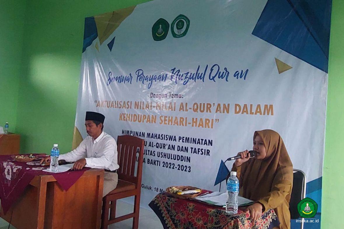 Perayaan Nuzulul Qur'an itu diisi dengan seminar bertema "Aktualisasi Nilai-nilai Al-Qur'an dalam Kehidupan Sehari-hari." Acara ini merupakan salah satu program kerja HMP IQT divisi Pendidikan.