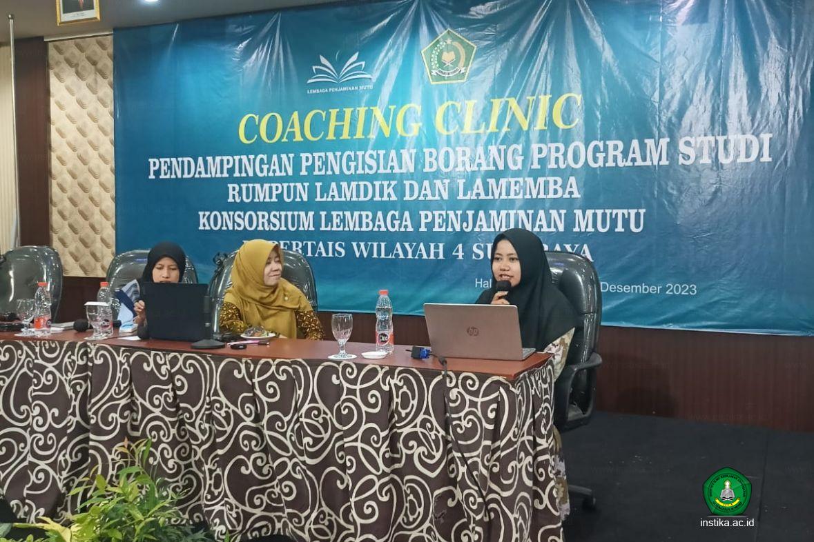 Surabaya - INSTIKA - Konsorsium Lembaga Penjaminan Mutu Kopertais Wilayah IV Surabaya menyelenggarakan Coaching Clinic Penyusunan Borang Akreditasi Program Studi di Hotel Halogen, Sidoarjo Jawa Timur. Coaching Clinic ini digelar mulai Jumat sampai Ahad (01-03/12/2023).